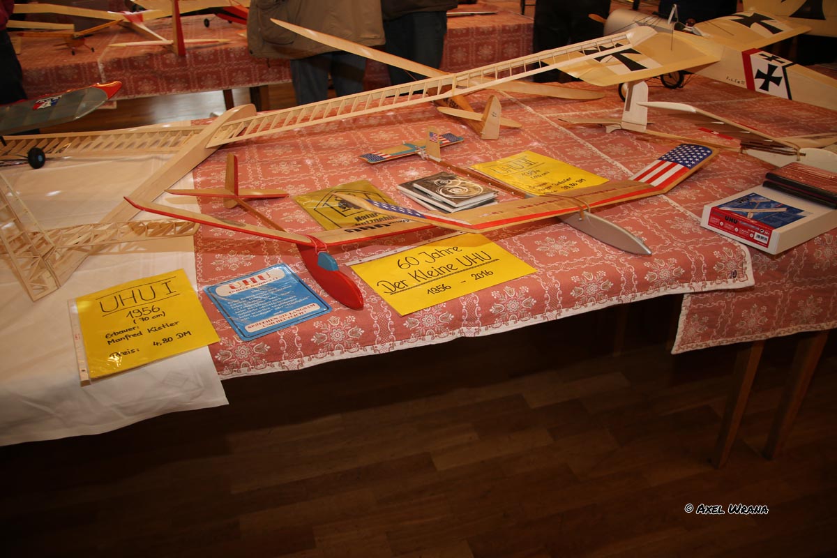 Alle Ausstellungsstücke werden auch einmal die Lüfte beherrschen, dafür wurden die vielen Stunden im Keller investiert. Es war und ist ein Genuss sich die alten "neuen" Schönheiten zu betrachten, die mit der so modernen Schaumwelt nichts zu tun haben. Sei es nun der zu groß geratene Amigo mit 4 Meter Spannweite (Schleppkupplung, Störklappen, Querruder) von Diemar Holl oder das kleine Grunau Baby mit gerade einmal 400 mm SW. Vom Fesselflieger Utra Stunter über die Motorensammlung samt Dampfmaschinen.