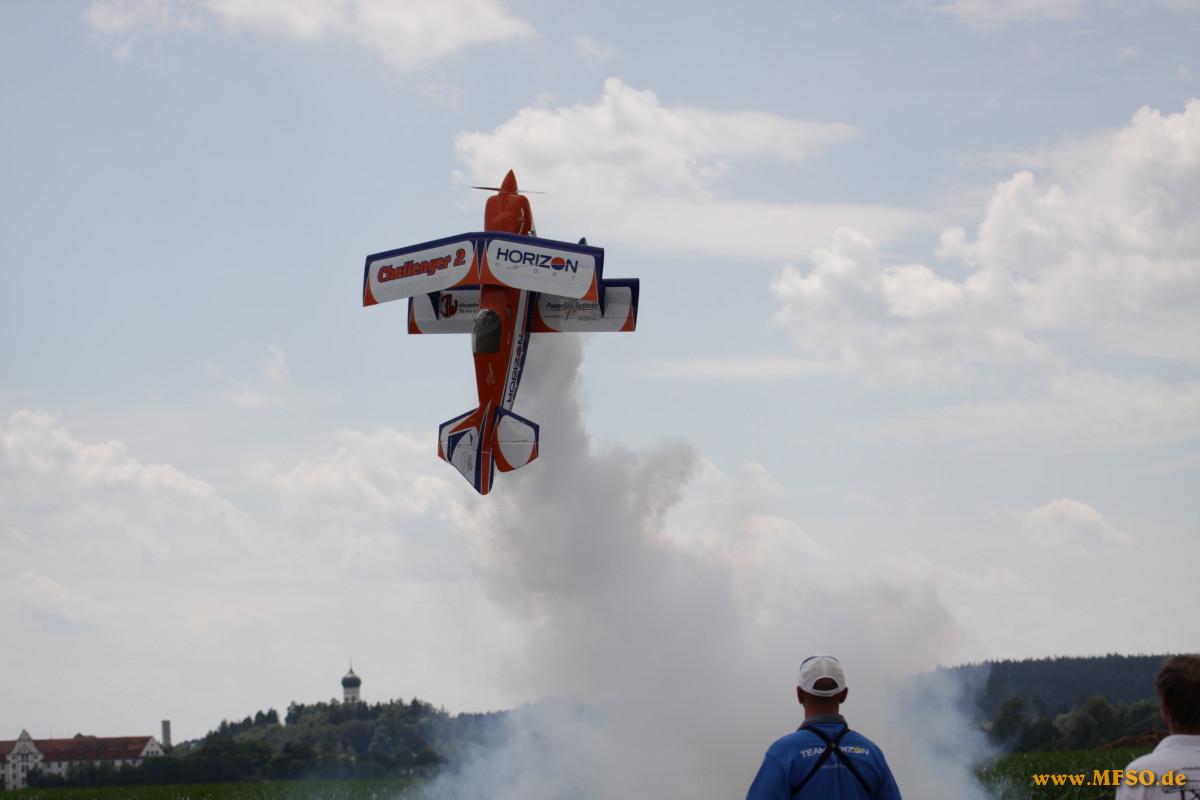 am 28.06.2014 fand die JR-Flugshow in Zusammenarbeit mit dem MLV-Krumbach statt. Jörg Redel setzte alle Hebel in Bewegung und konnte letztendlich die deutsche Elite des Modellfluges für diese Veranstaltung verpflichten. Und so kam es, daß sich die Pilotenliste liest wie das "Who is Who" der Showpiloten. Über Marc Petrak, Markus Rummer, Robert und Sebastian Fuchs, Luca Baumann, Stefan Wurm, Richard Deutsch und viele andere Cracks mehr. Die Piloten zauberten ein wahres Meisterwerk der Showflugkunst, als Synchronflug, mit Smoke, mit Schubumkehr, mit Vektorsteuerung oder einfach nur klassischen Kunstflug in den schwäbischen Himmel.