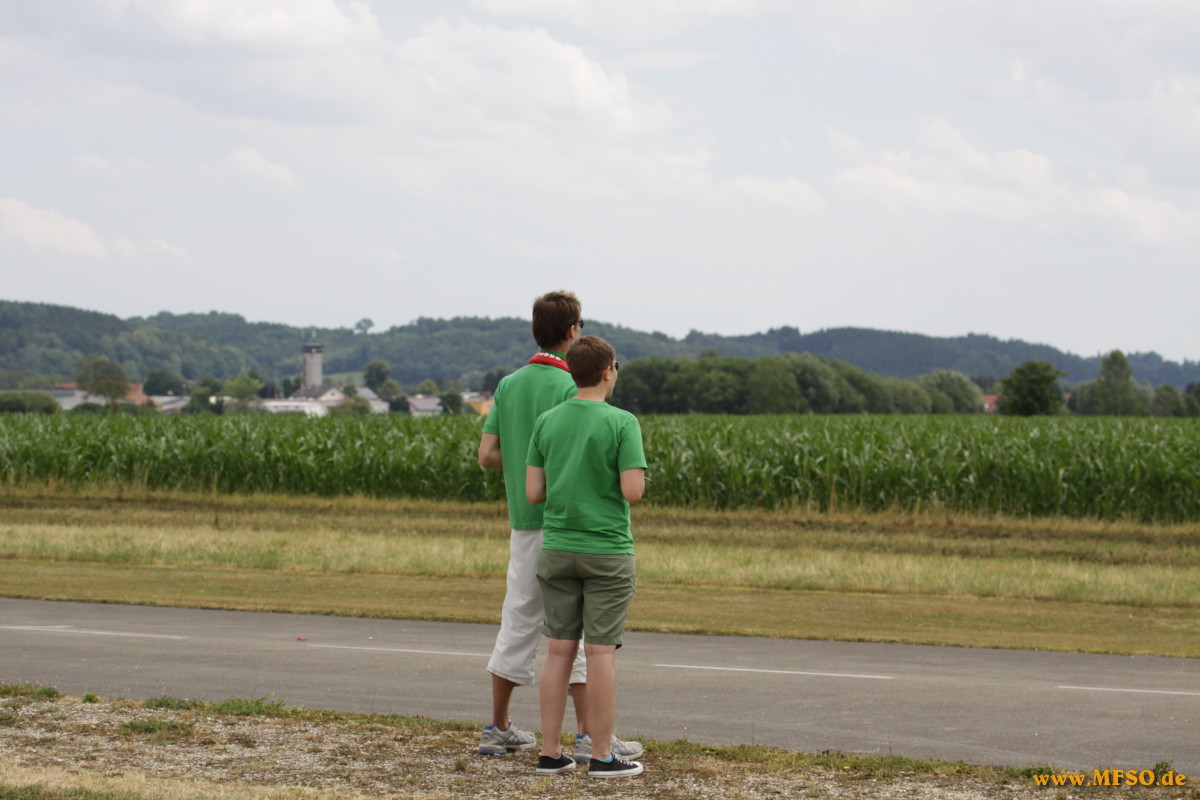 Der Veranstalter und die anwesenden Piloten schauten des öfteren besorgt in den, zugegebenermaßen Anfangs noch strahlend blauen Himmel, denn die Wettervorhersage kündigte eine Unwetterfront aus Richtung Westen an. Glücklicherweise hielt das Flugwetter jedoch bis in den späteren Nachmittag hinein, so das jeder anwesende Pilot sein Geflieg vorführen konnte. Natürlich fanden sich auch einige Hersteller und/oder Händler auf dem weitläufigen Gelände ein und Piloten und Besucher konnten sich mit vielen nützlichen Teilen bzw. Modellen eindecken oder einfach nur informieren.