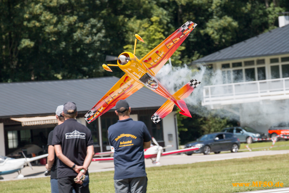 Am 24. Juli 2016 lud die MFG-Achental zur 2ten Chiemsee Airshow auf dem Gelände der Deutschen Alpen-Segelflugschule DASSU in Unterwössen ein. Seit langem planten die rührigen Modellsportler diese Veranstaltung in Mitten der Chiemgauer Berge. Es kamen so viele Anmeldungen zusammen, dass bereits im Februar (!) alle Plätze vergeben waren. Eines der größten Sorgenkinder von Piloten und Veranstalter war natürlich das Wetter. Hatte es am Freitag während eines Gewitters, wie schon an den vorherigen Tagen, heftigst geregnet, so war es am Veranstaltungstag wunderschön. Ein paar harmlose Wolken am Himmel bildeten einen wunderbaren Kontrast zum typisch blauen Himmel über Bayern. Aba wia scho a oids Sprüchal aus Chieming sogt: „Hod da Feln und da Gern an Huad, wead´s weda guat. Und somit waren beste Voraussetzungen gegeben um die 2te Chiemsee-Airshow zu starten. Dies ließen sich auch rund 3500 Zuschauer und annähernd 60 Piloten mit ungefähr einhundert Flugmodellen nicht nehmen und machten sich auf den Weg zum Gelände der Alpensegelflugschule.