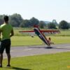 Nach dem dies vorbei war trugen sich die Piloten in den Flugplan ein. So hatte jeder der anwesenden Piloten die Gelegenheit sein Können zu präsentieren und seine Modelle vorzuführen. Hierbei war es egal ob man einen hochmodernen Jet flog oder ob es sich um ein Modellflugzeug aus den 70ern, gell Herr Eiglsperger , handelte. Es wurde die gesamte Vielfalt des Flugmodellsports geboten, vom Scale-Heli (in besonderer Mission als Glückwunschträger für den 40jährigen Hochzeitstag des Piloten, Glückwunsch auch von uns an dieser Stelle!) und Düsenfliegern über Warbirds , Doppeldeckern bis hin zu Großseglern im F-Schlepp. Angetrieben wurden die zahlreichen Modelle von Hochleistungselektromotoren, hubraumstarken Benzinmotoren bis hin zu originalgetreuen Düsentriebwerken. Neben dem Glückwunsch-Heli sind natürlich Robert und Sebastian Fuchs sowie Tim Stadler, alle vom RedBull-Team, besonders erwähnenswert. Nachdem die drei schon am Nachmittag mit ihren neu gestylten Doppeldecker ein grandiose Synchronflugshow zu Musik gezeigt hatten, gab es nochmals eine Steigerung in dem perfekter Formationsflug mit ihren neuen F104 – Starfightern am Himmel zelebriert wurde. Während dieser Vorführung herrschte absolute Stille bei allen Anwesenden. Nach deren Landung wurde das Team mit lang anhaltendem, frenetischem Applaus bedacht.