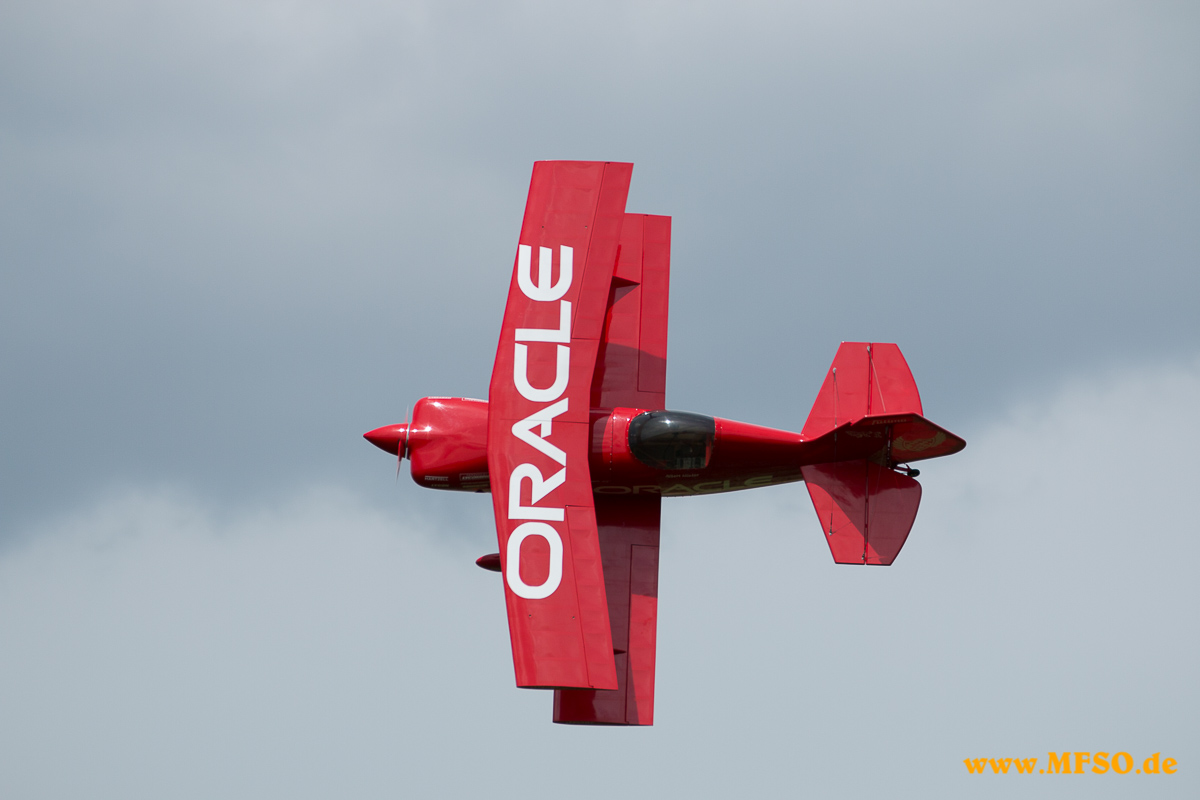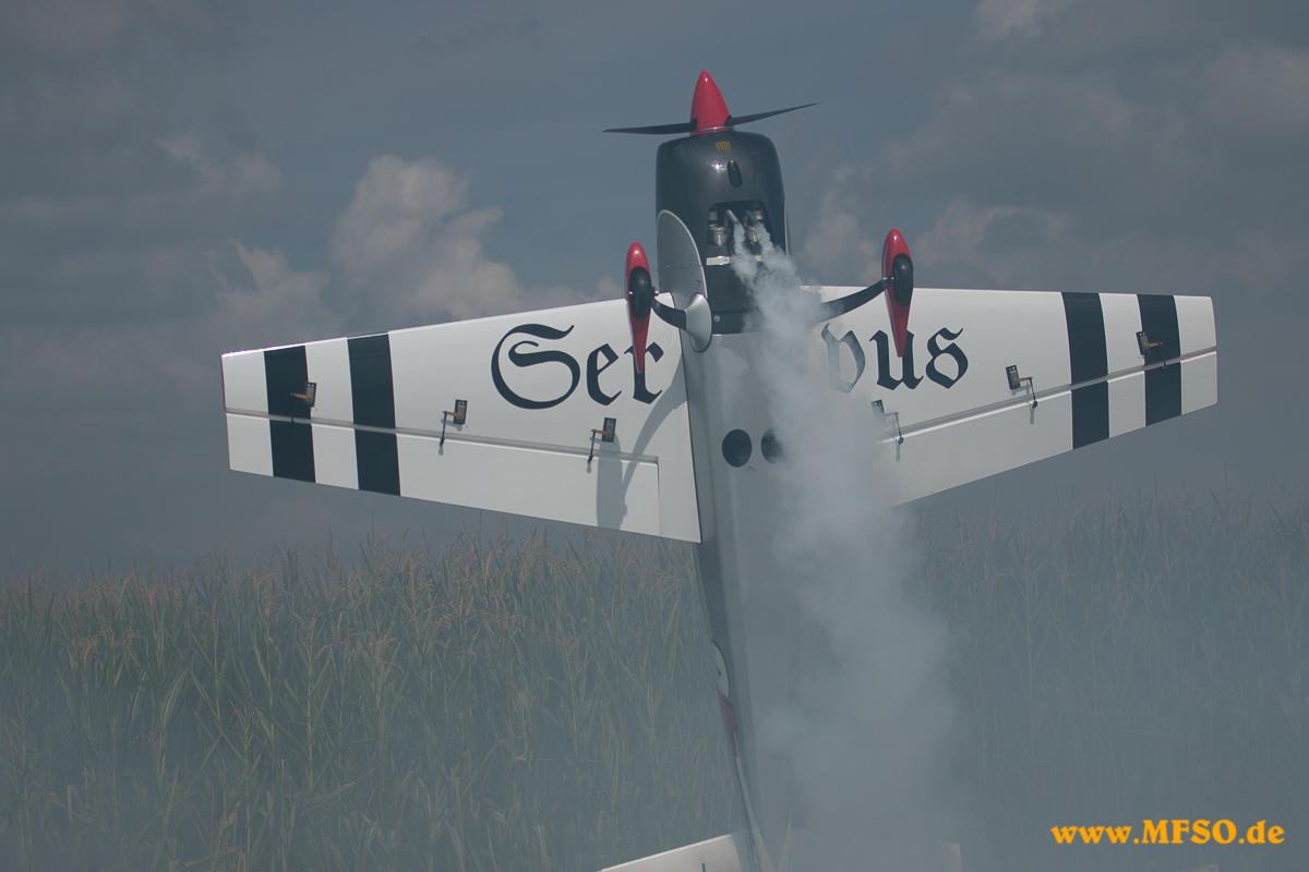 Und die Vielfalt der vorgeflogenen Modelle konnte sich wahrlich sehen lassen: Über Kunstflugmaschinen aller Art, turbinengetriebenen Jets jeglicher Epoche, Warbirds, Kunstflughelis als auch vorbildgetreue Hubschrauber, genauso wie experimentelle Fluggeräte, nahezu alles konnten die erstaunten Besucher in Aktion sehen. Bis auf eine „Aussenlandung“ aufgrund eines Motorabstellers, gab es keine Verluste oder Beschädigungen zu vermelden.