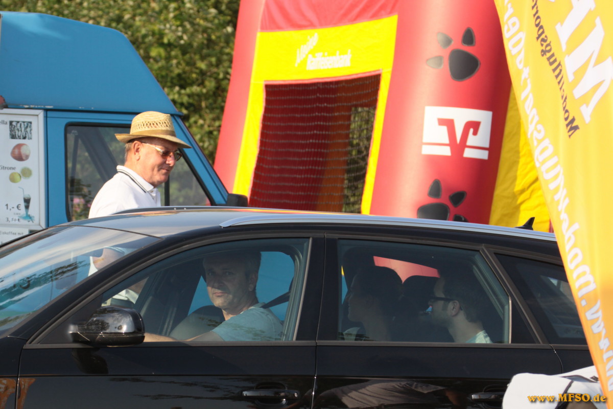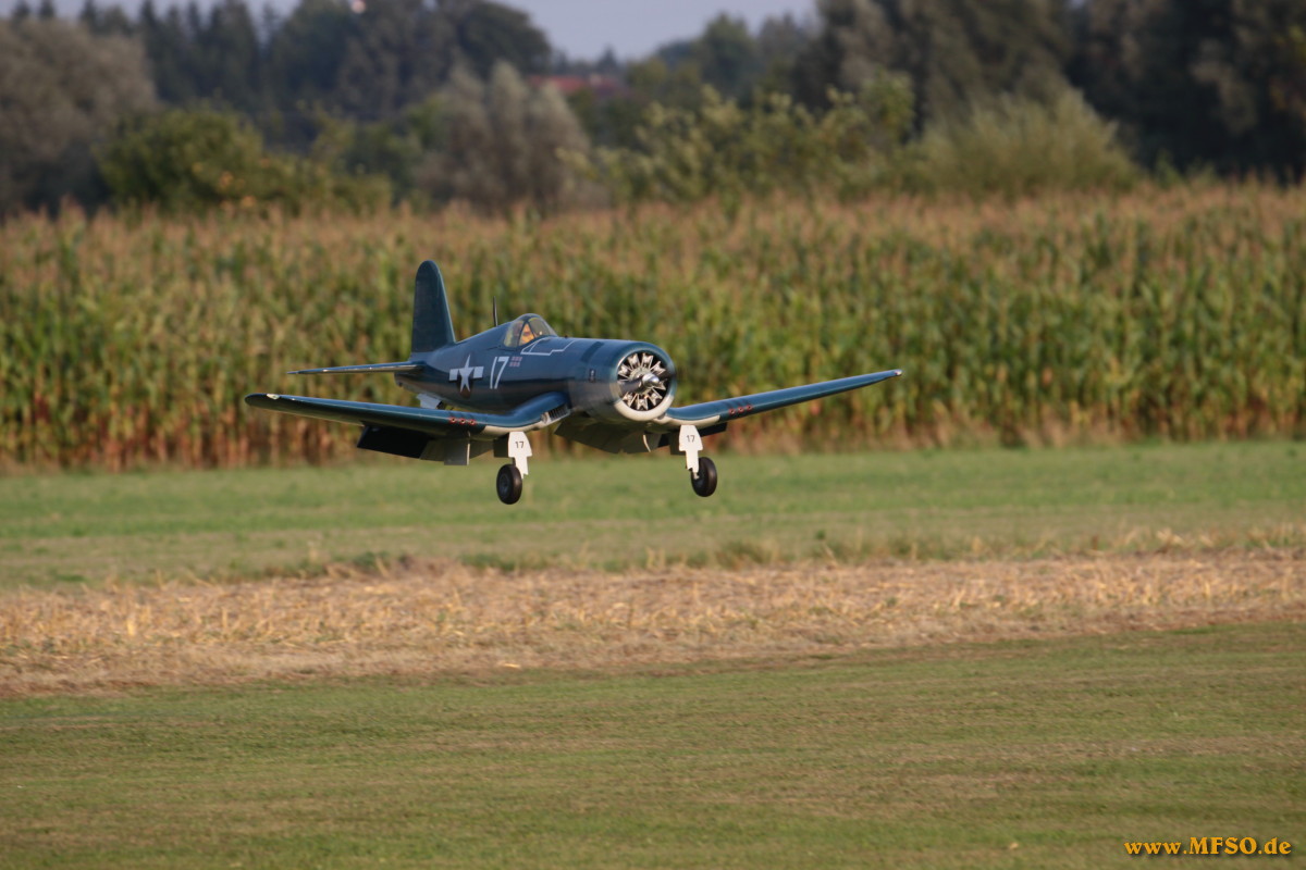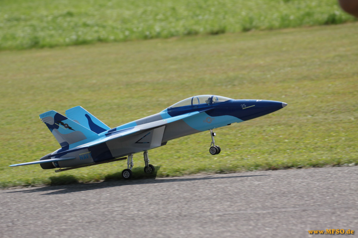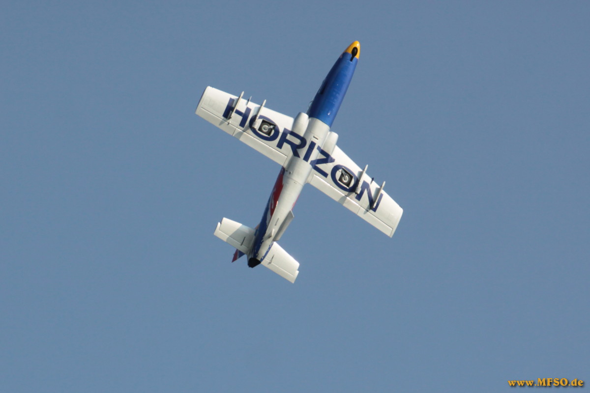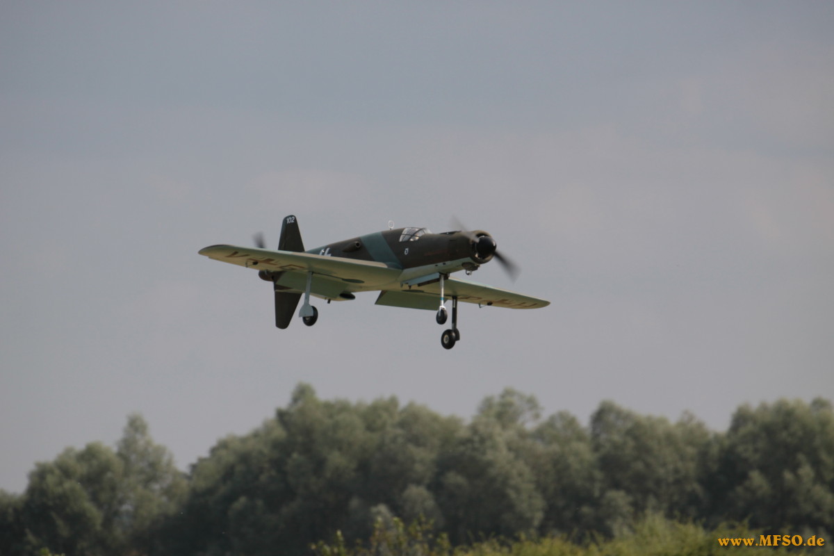Dannach folgte ein Highlight dem nächsten. Die zahlreichen Piloten, darunter auch etliche sehr bekannte Gesichter aus der Scene, präsentiertem dem Publikum eine atemberaubende Airshow. Ein bunter Querschnitt durch den Modellflug sorgte für viel Staunen. Klassischer Kunstflug mit Motormodellen oder auch Seglern, verschiedene Staffeln, darunter die P47-Staffel oder die Dreidecker aus Bad Aibling, 3D-Vorführungen mit Smoke, Helis denen man kaum mit den Augen folgen kann oder aber die schnellen, sehr schnellen, turbinen-getriebenen Jets bzw. die Impellermodelle. Bestens kommentiert, mit sehr viel Kenntniss und noch mehr Witz von Jürgen Gollnow, einem langjährigen Vereinsmitglied. Die Liste könnte noch lange so fortgeführt werden, dies würde aber den Rahmen dieses Berichtes bei weitem sprengen. Nicht überhörbarer Applaus war den Piloten sicher, wenn die Modelle wieder gelandet waren. Das Angebot des Vereins an kulinarischen Köstlichkeiten erstreckte sich von superleckeren, selbstgebackenen Kuchen und Torten, über belegte Semmeln bis hin zu Deftigem vom Grill mit vorzüglichen Beilagen. Natürlich gab es neben heissem Kaffee auch gekühlte Getränke, welche bei sommerlichen Temperaturen regen Absatz fanden. Den ganzen Tag über standen die Menschen an den Ständen an um sich an Speiss und Trank für kleines Geld zu laben. An dieser Stelle ein herzliches Dankeschön an die Frauen des Vereins ohne die manches nicht möglich gewesen wäre.....