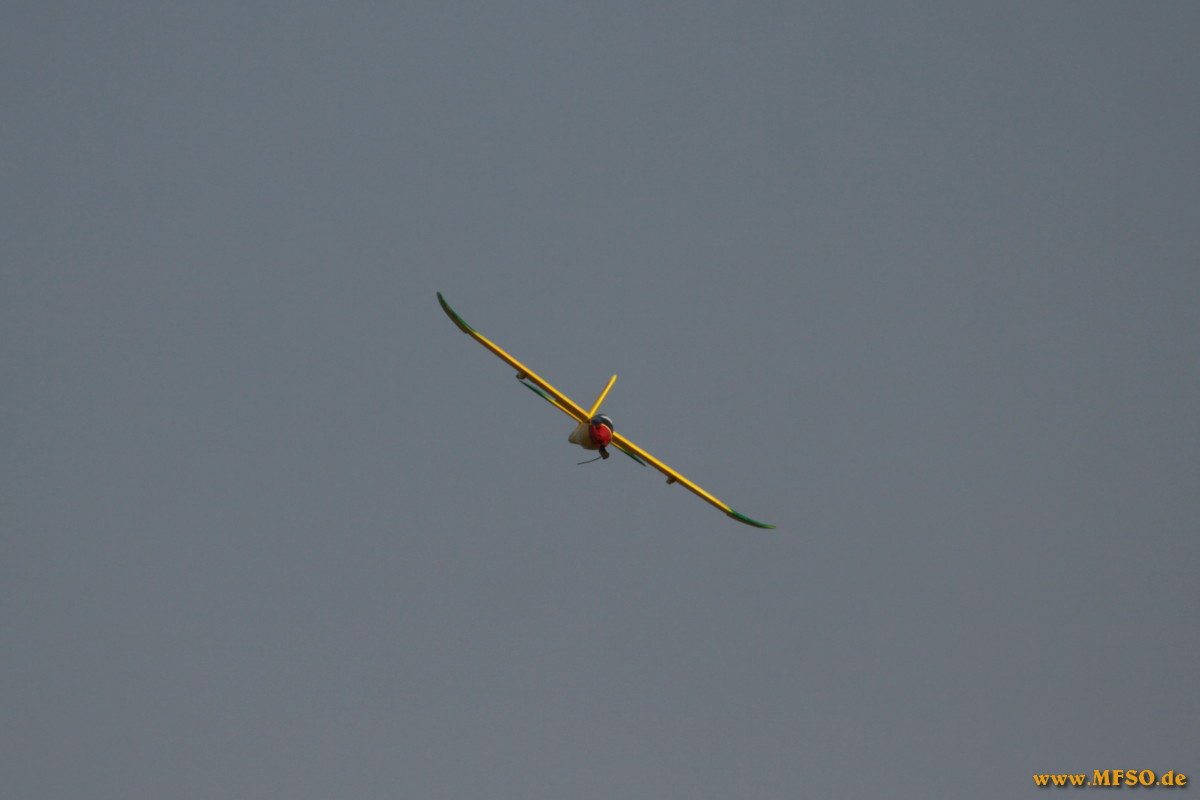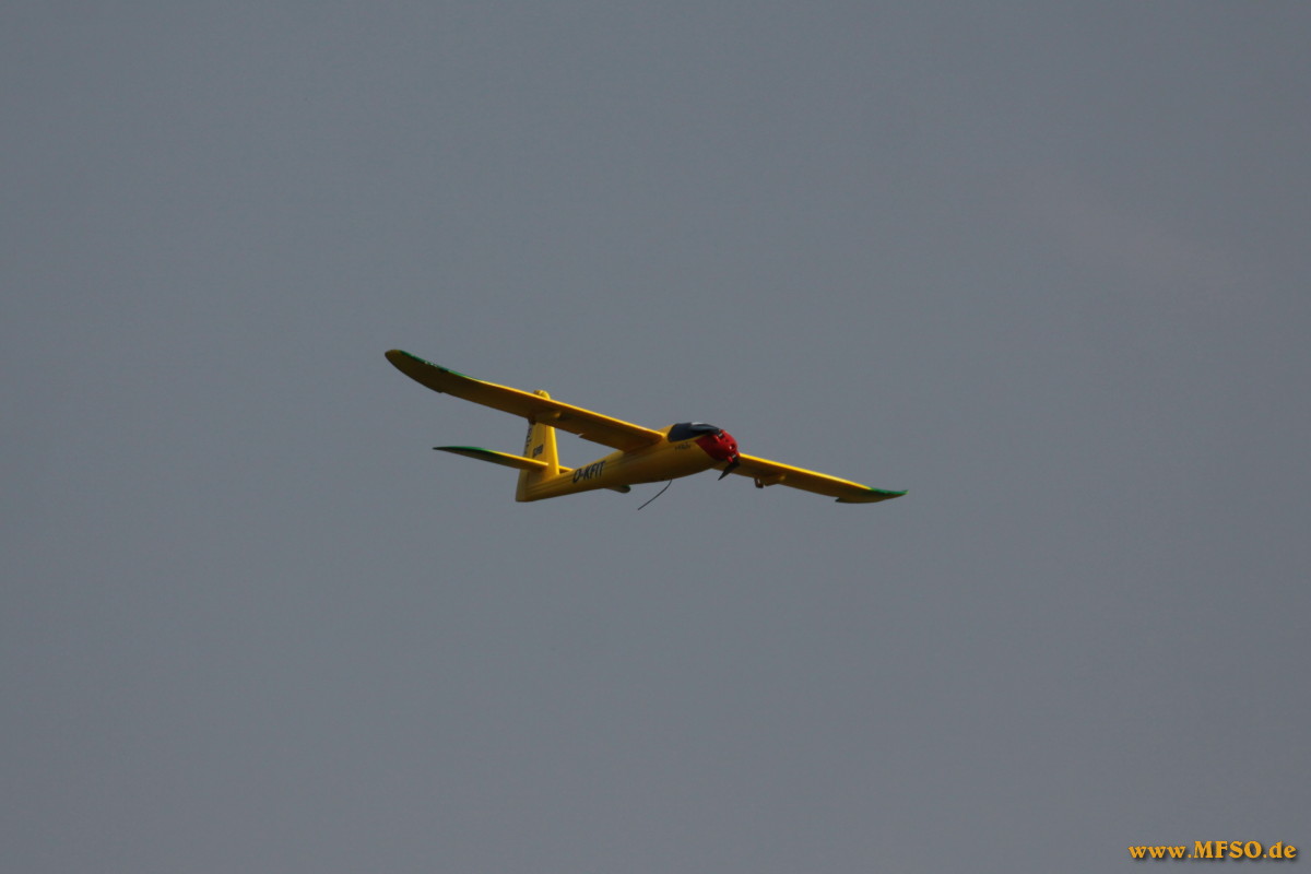 Eröffnet wurden die Flugvorführungen von der Jugendgruppe der MFG, welche, in einem Gemeinschaftsprojekt, sogenannte HLG`s (Schleudersegler) gebaut hatten. Leider waren nicht alle Modelle, trotz heftigster Bemühungen und auch Nachtschichten, fertiggeworden, so daß dem Publikum nur einer der HLG`s vorgeführt werden konnten. Trotzdem ernteten die Jugendlichen ordentlichen Applaus vom mittlerweile sehr zahlreichem Publikum.