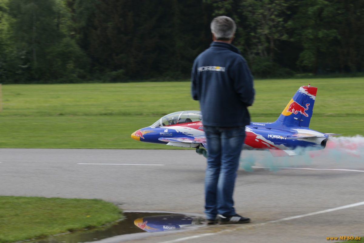 Neben dem Veranstalter Litronics bauten auch die Firmen Horizon-Hobby, Multiplex, Hacker und Yuneek ihre Präsentationsstände auf, bevor die letzten Piloten und die ersten Zuschauer auf das sehr weiträumige Gelände strömten, Anschließend an das obligatorischen Briefing in einer Pfütze, der Platz war noch nicht so weit abgetrocknet, begannen die Flugvorführungen. Kommentiert wurde mit viel Sachverstand und auch mit sehr viel Witz von Martin Hübsch, ebenfalls vom MFC Seefeld-Hochstadt.