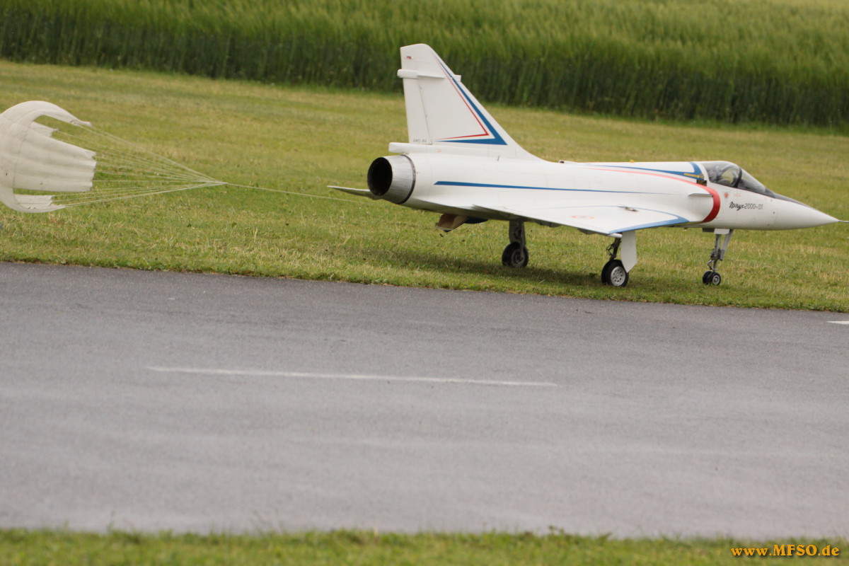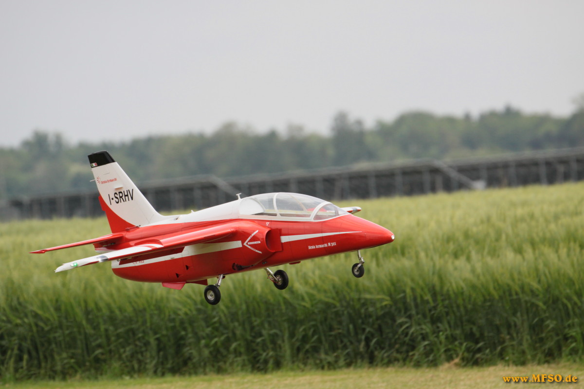heute gibt`s für Euch einen kleinen Bericht vom JET-Treffen SKYFIRE 04 veranstaltet vom IFM-Pocking am 25.05.2013. Eigentlich hätte dieses Event ja FIRE and ICE heißen sollen, denn das vorherrschende Wetter war alles andere als sommerlich. Neben wolkenverhangenem Himmel mit zeitweiligen Schauern und hochsommerlichen Temperaturen um 8°-Celsius waren die Vorraussetzungen für ein Flugtag alles, ausser ideal. Nichtsdestotrotz kamen viele Piloten aus Nah und Fern um an dieser Veranstaltung teilzunehmen. Zuerst noch zögerlich beim Aufbau der Modelle, dann aber immer mutiger, denn die Regenschauer ließen deutlich nach und die gefühlten Temperaturen stiegen von Arschkalt auf ein angenehmes Kalt, sah man nach geraumer Zeit ein bemerkenswert großen Feld an Jets, die meisten davon mit Turbine aber auch einige elektrische Impeller, im Vorbereitungsraum stehen. Ein Pilot nach dem anderen machte seinen Flieger bereit um den Himmel über Pocking mit Leben zu erfüllen. Durch die relativ geringe Anzahl an Teilnehmern konnte jeder seinen Flieger mehrfach vorführen, wobei jeder Flug von den anwesenden Piloten und der, mittlerweile, stattlichen Anzahl, von Zuschauern mit Applaus belohnt wurde. Außer in der obligatorischen Mittagspause, in der nur mit elektrisch betriebenen Modellen geflogen werden darf, war ständig der Luftraum über dem Platz mit dem Heulen der Turbinen und dem Geruch nach Kerosin erfüllt. Das Können der Piloten und die bauliche Ausführung der gezeigten Modelle bewegten sich ausnahmslos auf sehr hohem Niveau. Ausser neben einer, glimpflich verlaufenden Aussenlandung, durch Turbinenabsteller, gab es keine Zwischenfälle. Bemerkenswert auch die Vielfalt der Modelle welche vom Versuchsflugzeug aus den 50ern über den Witwenmacher aus den 60ern bis hin zum modernen Kampfjet aus der Gegenwart aber auch reinen Zweckmodellen reichte.