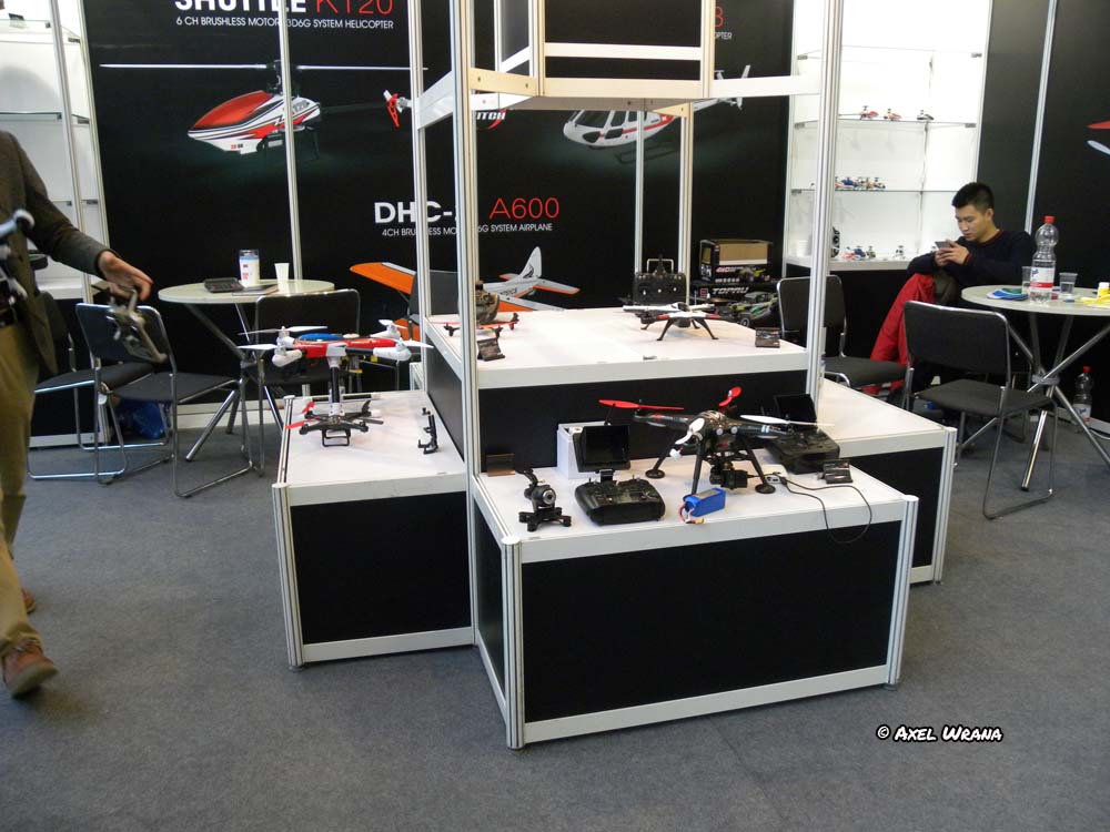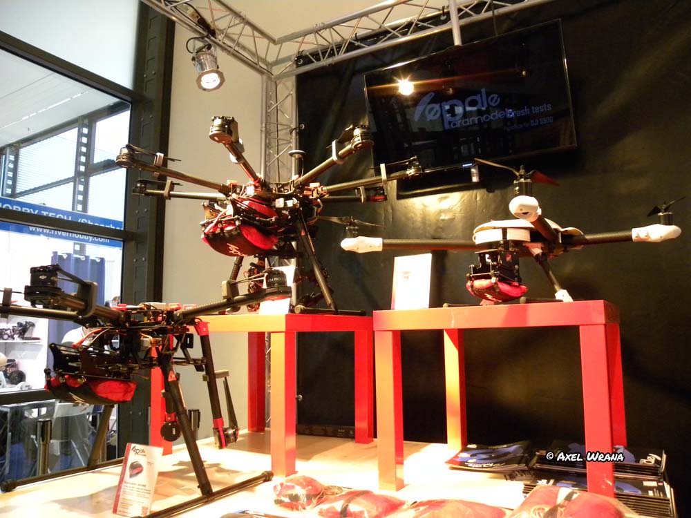 Viel zu sehen waren Drohnen an allen Ecken. Vom Minispielzeug hin zum vollwertigem Beobachter in HD-Qualität in Handflächengröße und in keiner Weise zu unterschätzen die richtig großen professionellen Geräte mit Tragkräften weit über die 15 kg Marke hinaus. Diese High Tec Geräte sprechen aber sicherlich nicht mehr den Modellflugsportler sondern die gewerblichen Unternehmer zur Analyse ihrer Fachthemen an.